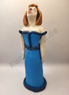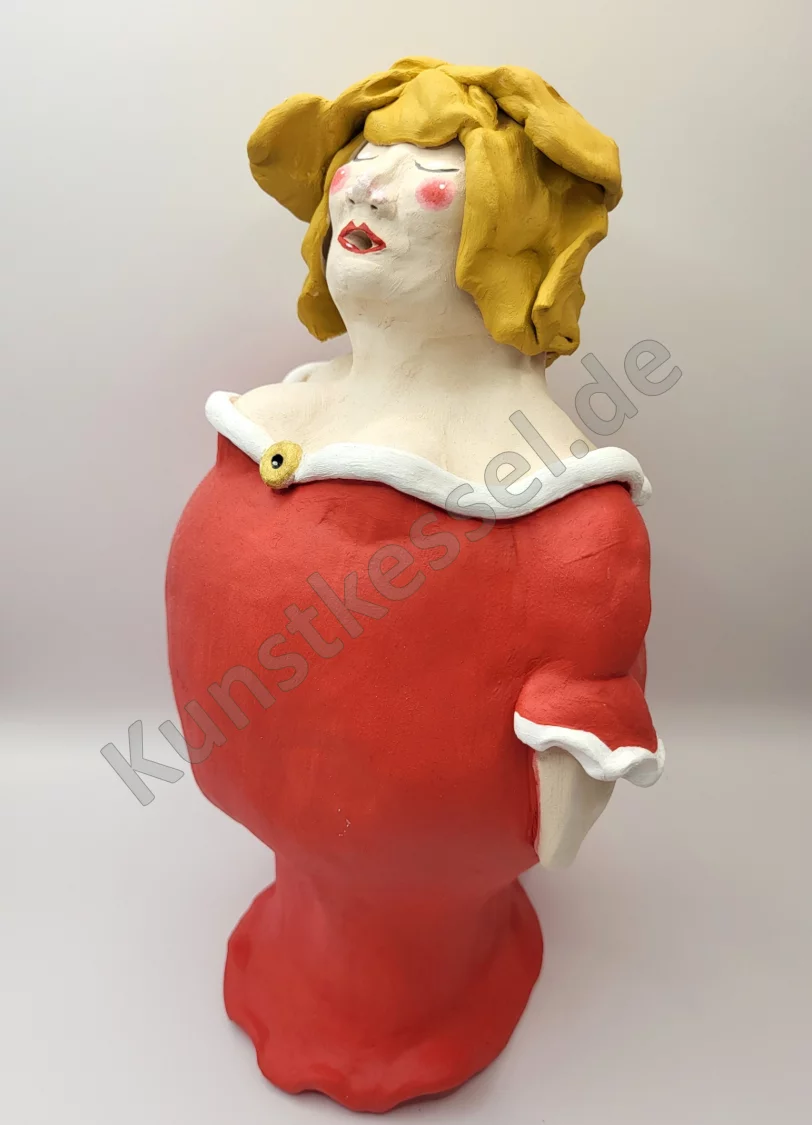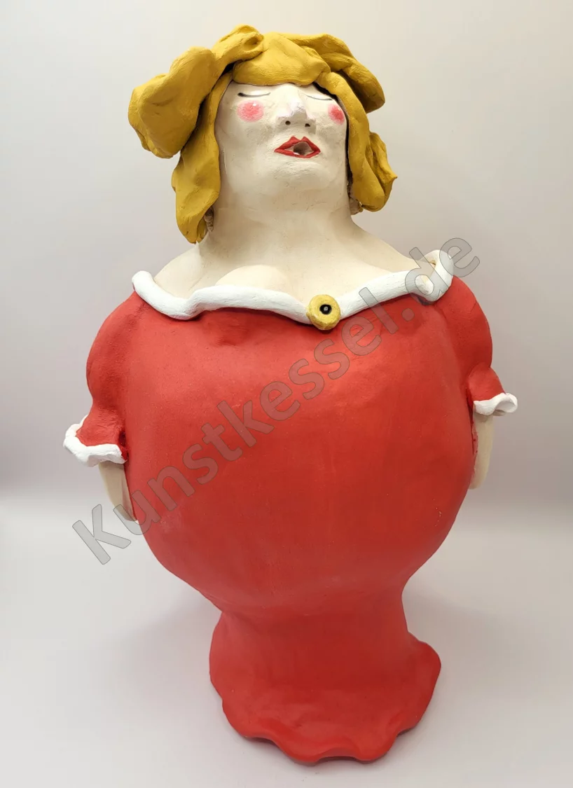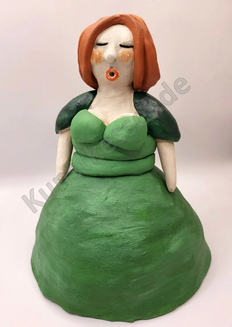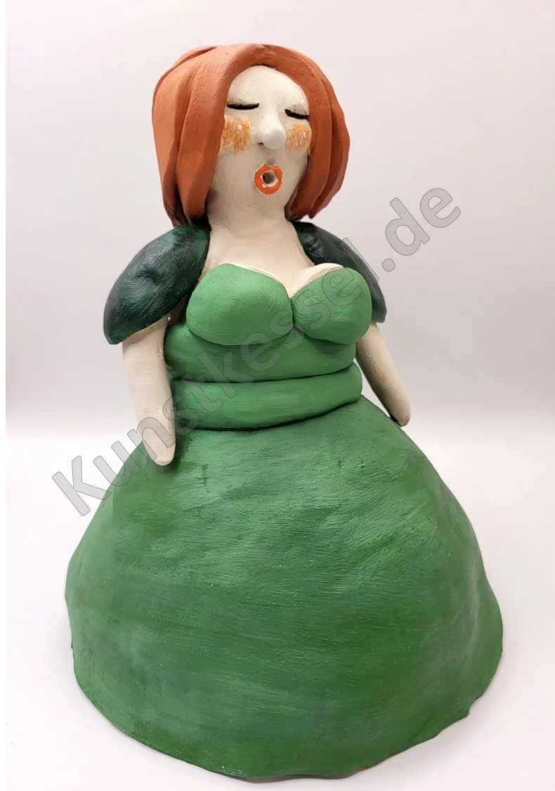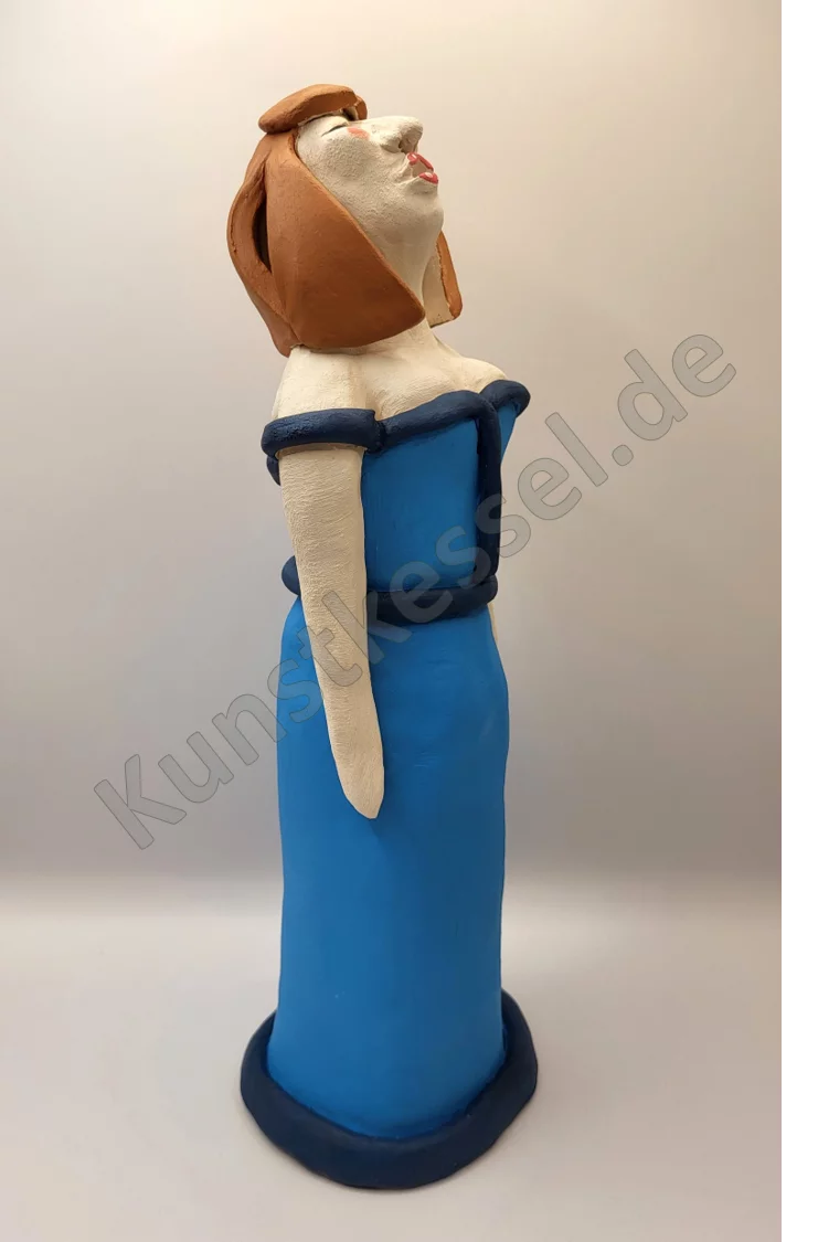 Das ist Mary, die erste im Chor. Material: weißer Ton, bemalt mit Acryl und transparentem, matten Acryllack. Höhe: ca. 25 cm.